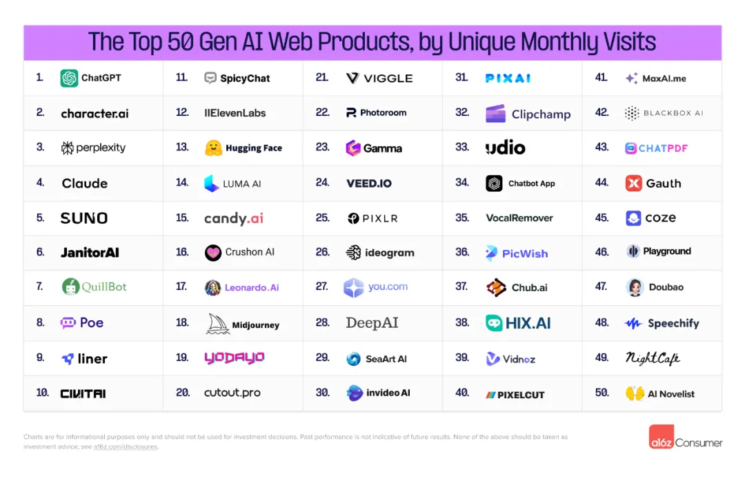 a16z Global AI Product Top 100 List – Third Edition Highlights